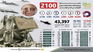 مركز عين الإنسانية يكشف إحصائية 2100 يوم من العدوان على اليمن