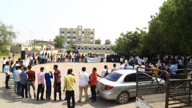 وقفة إحتجاحية بجامعة الحديدة للتنديد بتطبيع الإمارات مع الكيان الصهيوني