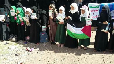 2020/2/3م تحت شعار لا لصفقه القرن خرجت الهيئه النسائية الثقافية العامه لأنصار الله بمحافظة عمران مديرية المدان اليوم الاثنين بوقفة…