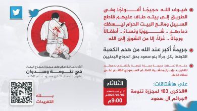 مساء اليوم.. حملة تغريدات في الذكرى 103 لمجزرة تنومة وسدوان بحق الحجاج اليمنيين