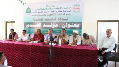 برعاية الوحدة الاجتماعية بمحافظة الحديدة وبمناسبة ذكرى المولد النبوي الشريف اقام الملتقي الاكاديمي بجامعة الحديدة ندوة فكرية ثقافية بعنوان مولد…